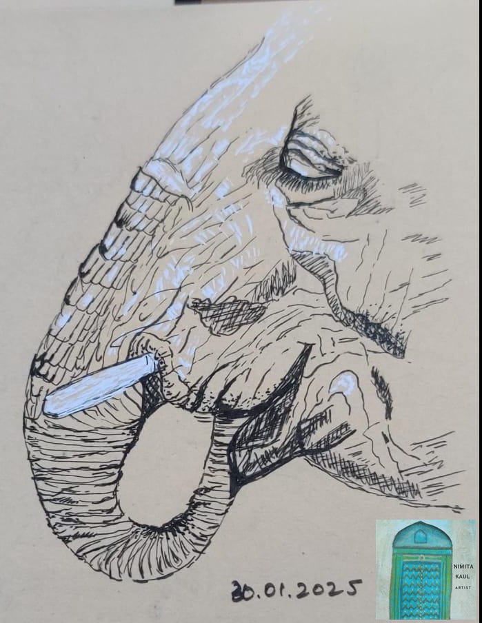 Based on a photograph from Pinterest, my inspiration was Artist Ohn Mar Win’s black and white creations on toned paper. This was part of my almost daily art practice in the beginning of 2025, where I aimed to make sketches within 10-15 mins or half an hour in one morning session before the day started. Being Kind to myself when I didn’t feel like creating, or when I had a feeling that it wouldn’t work, and I did not push myself.