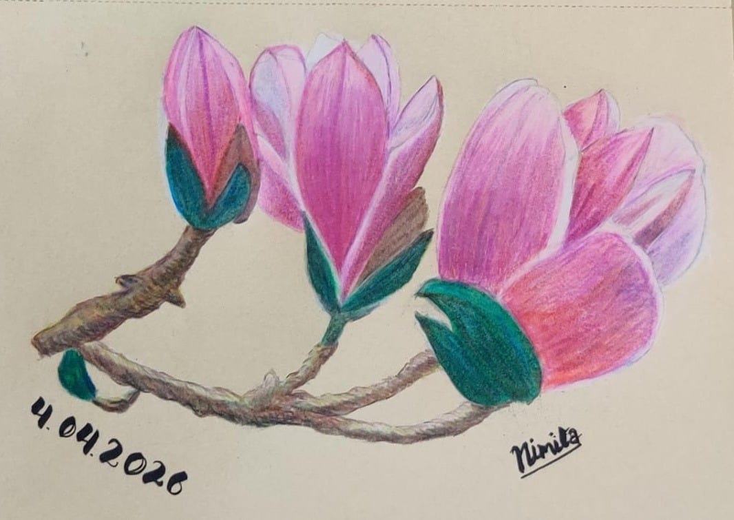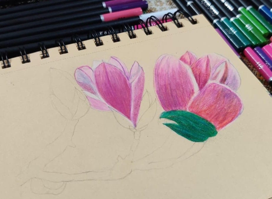 I think I've figured out why flowers are my favourite subject to create. Why I return to them repeatedly, in overwhelm, self-doubt or When gripped by irrational fears. As a child, I promised my Mom, that I would grow up to be a rich enough adult, so that she wouldn't have to do household chores, anymore. She was touched, but That's not what she needed or cared for. She was the first to protest, when she saw me drained out of energy and sleep, without catching a break for days, without stopping to breathe. Made it repeatedly clear that money and independence were important, but not at the cost of my peace. Nothing could beat living life thoroughly. Time moved in linear, never stopped for repeats. Flowers are Mom's favourite gift to receive, Her eyes light up and her face sparkles, Smiles don't easily leave... That's why I'll never tire of creating flowers, to ensure that she has them around in every shape and form, coloured to her desire.